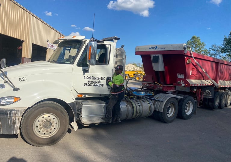 A. Cook Trucking proudly serves Southeast Michigan by providing reliable and professional trucking services to support commercial, industrial, and road construction projects throughout the region.